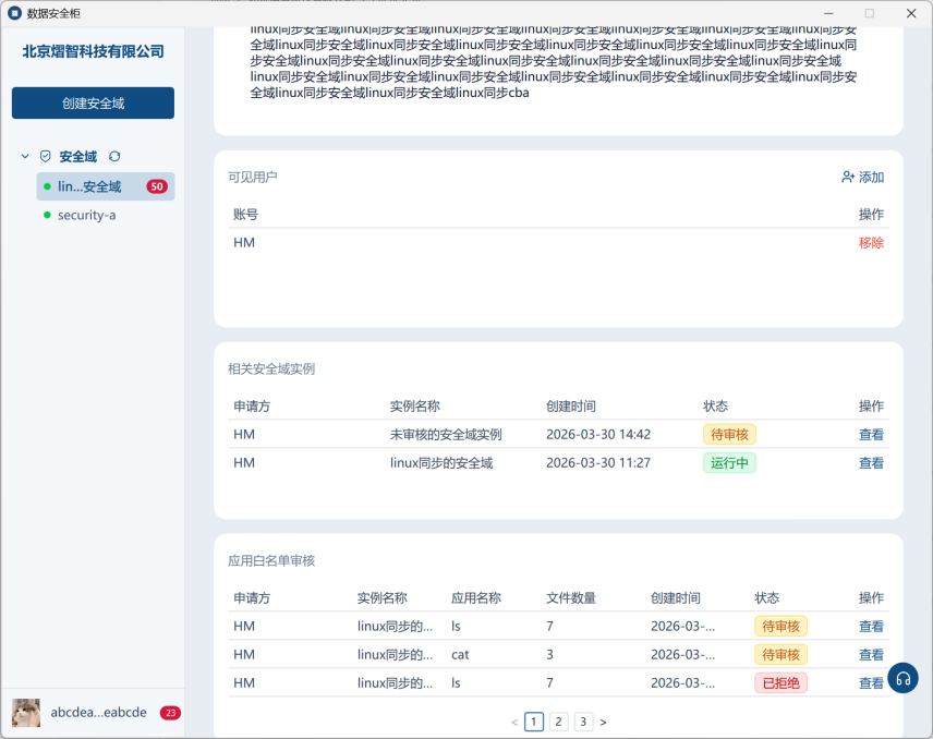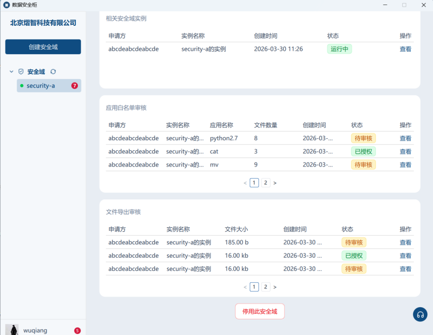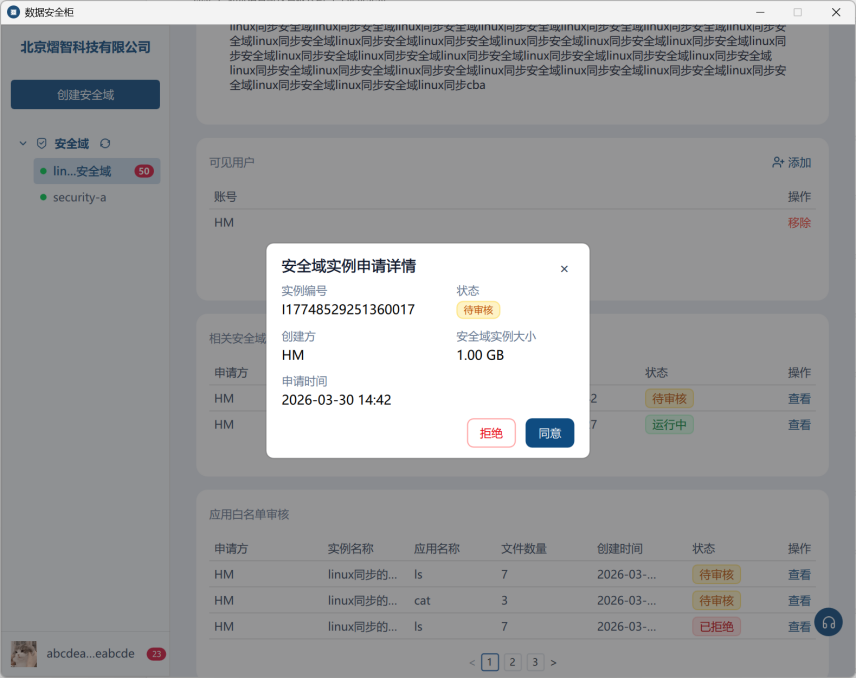 1.安全域创建方可在安全域实例列表中统一管理所有实例申请,包括查看申请详情以及进行审批操作。
