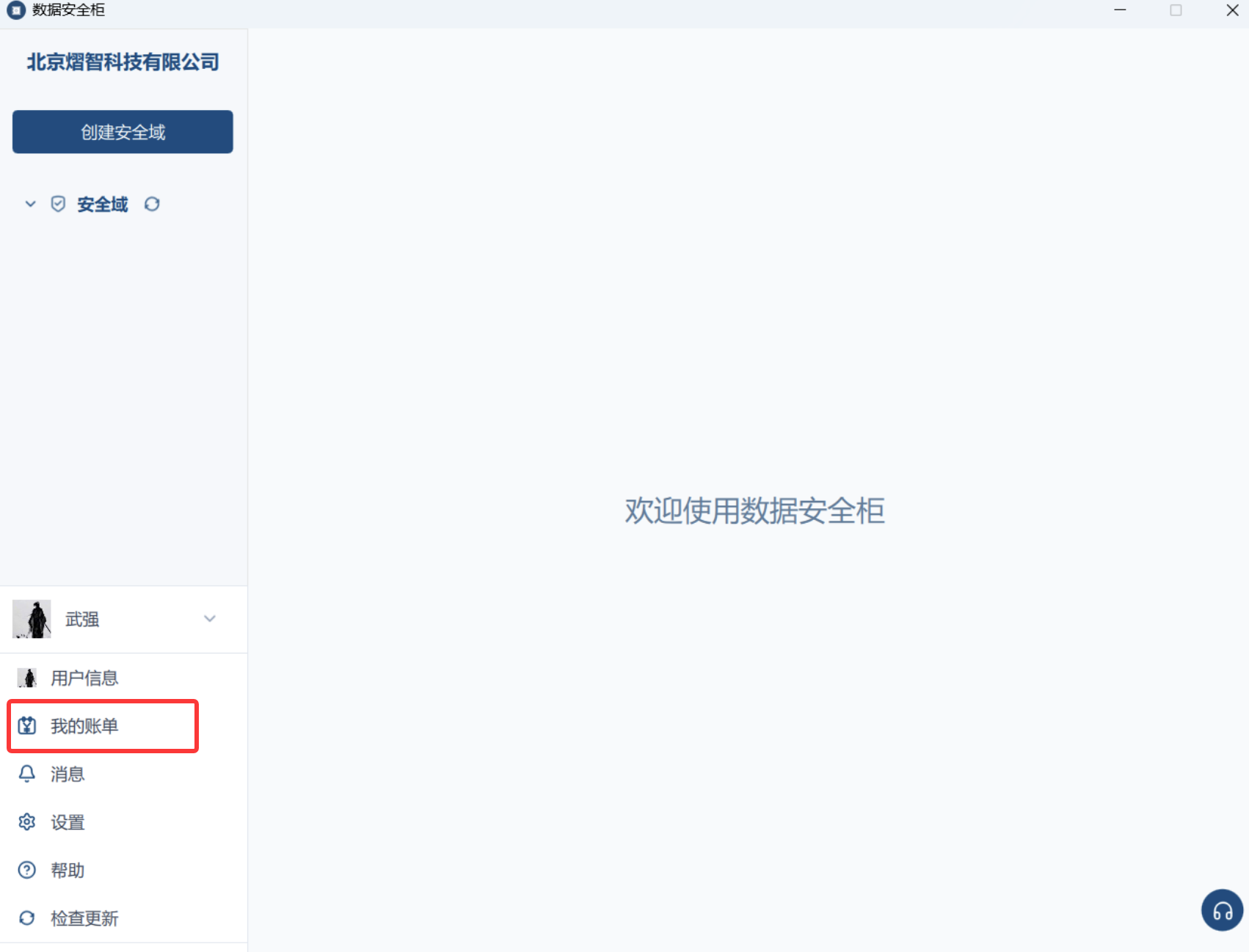 在 Windows 客户端底部导航栏中点击【我的账单】,即可跳转至数据安全柜网页端,并自动打开“我的账单”页面。